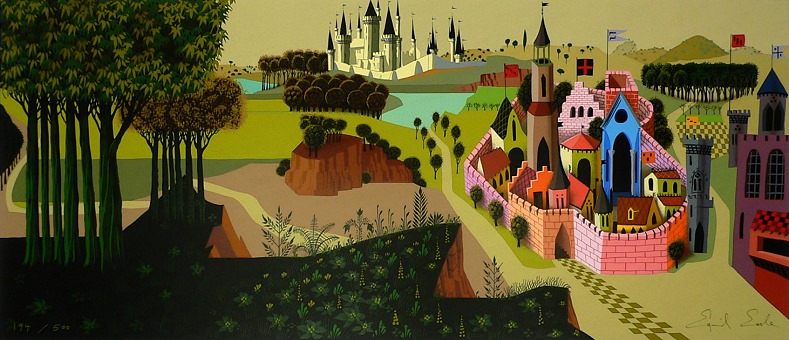 LSLB06 Sleeping Beauty Countryside Künstler: Eyvind Earle , Aufl. 500 Expl. Serigraphie / Siebdruck auf Karton Blatt ca. 45 x 90 cm ohne Rahmen , Motiv ca. 32,5 x 76,5 cm